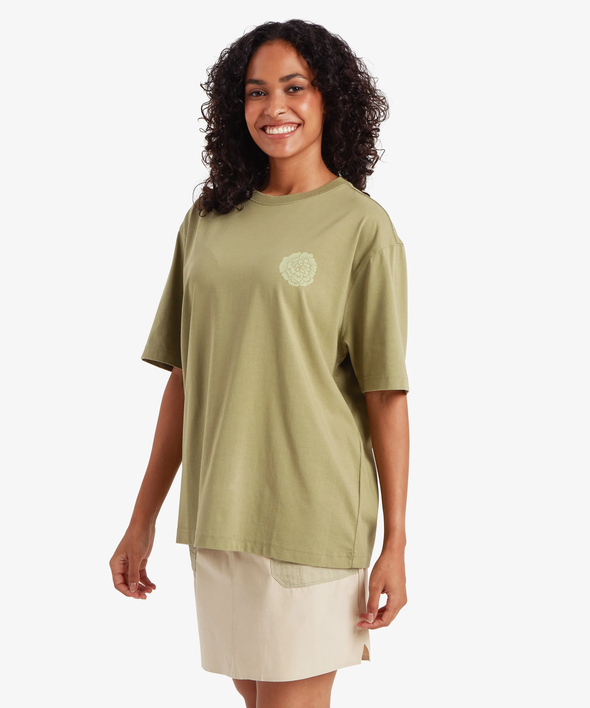 Designed in Nepal, the Tarcho Marigold T-Shirt is a laid-back essential for embracing everyday adventure. Crafted from 100% organic cotton, this crew neck jersey T-Shirt offers soft, breathable comfort with an easy oversized boyfriend fit designed for all-day wear. Featuring an exclusive front and back print design and finished with a 26-inch back length, this versatile T-Shirt is made for exploring, unwinding, and effortless everyday activities.